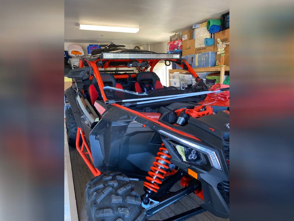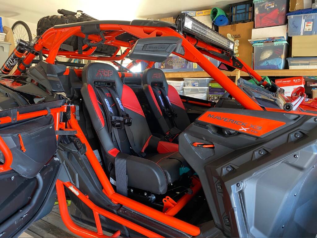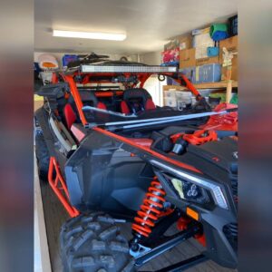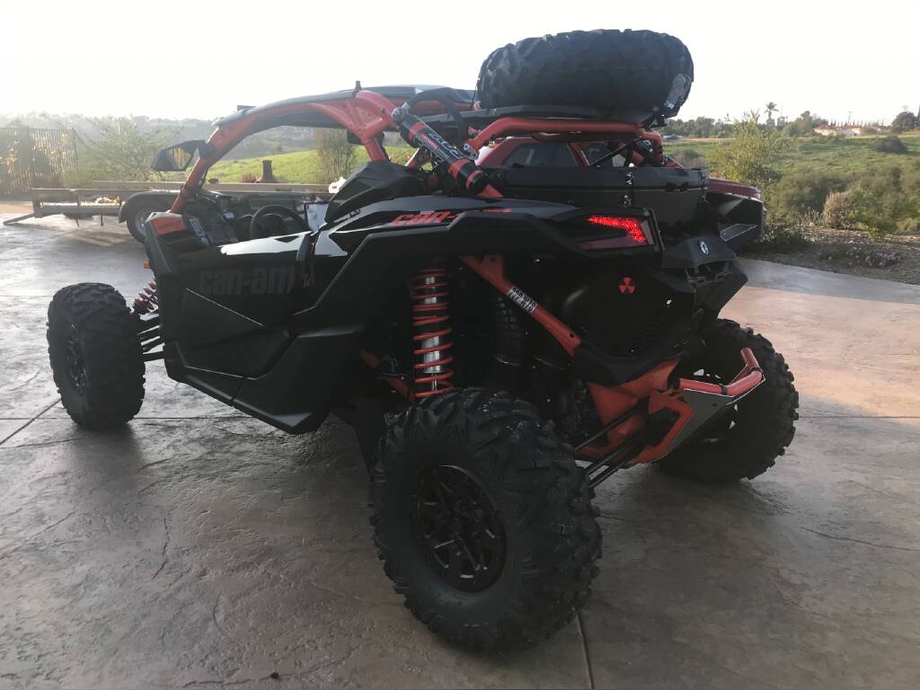 Tensor Tires and Method Wheels – , BRP Seats , Rugged Radio and intercom – , PRP seats – , Yoshimura Exhaust – , Evolution Stage 3 Tune – , Intake Filter – , Can Am rear shelf and box – , Baja Lights – , LED Whip Antennas – , Can Am Rock Sliders – , Can Am Lower Doors – , Can Am Door and Center Bags – , Can Am Shoulder Bag – , Rock Lights – , Can Am Bumpers F+R -, Chase Lights – , Battery Cover Panel -, Original factory wheels and tires available also.